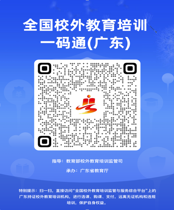 “全国校外教育培训一码通”是依托全国平台建设的官方二维码,家长学生可以通过支付宝、微信“扫一扫”功能,一键直达全国平台家长端,快速查询云浮市持证机构各类信息,“一站式”便捷开展在线选课、支付、合同签订、退费等校外教育培训服务。