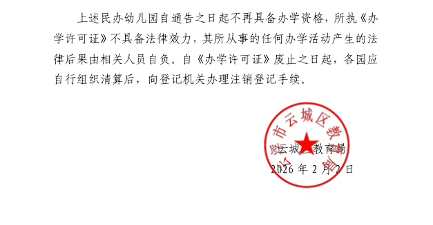 关于废止云浮市云城区鹏石爱心幼儿园、云浮市云城区童之梦幼儿园《办学许可证》的通告