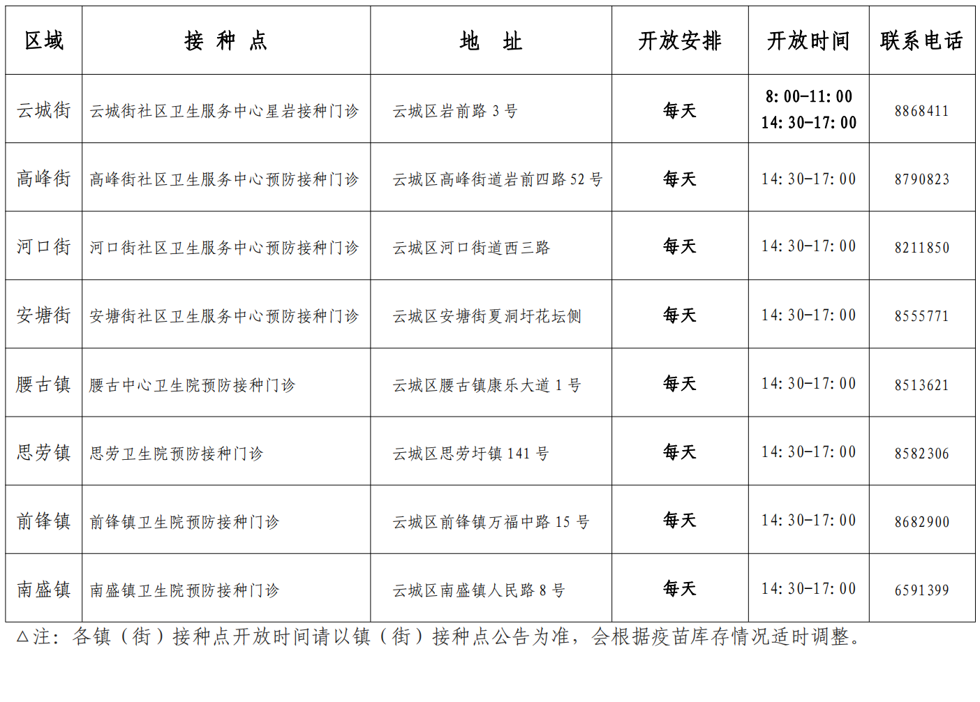 各镇(街)未接种疫苗的3-11岁人群,家长或监护人尽早陪同到属地预防接种门诊完成接种。(附云城区接种点名单)