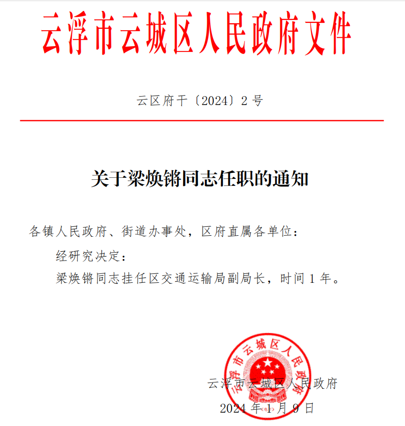 关于梁焕锵同志任职的通知