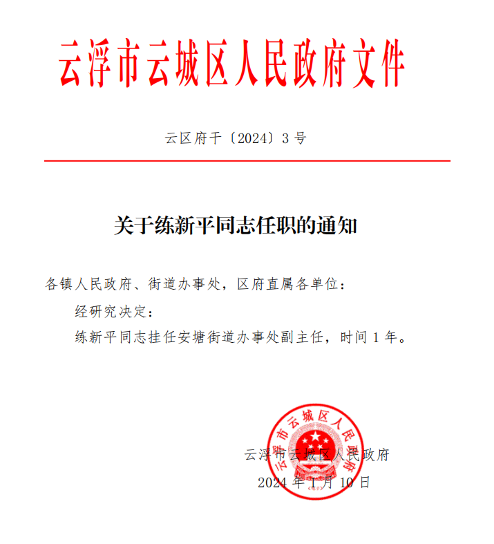 关于练新平同志任职的通知
