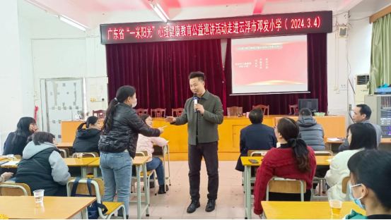 为深入贯彻落实教育部等十七部门关于印发《全面加强和改进新时代学生心理健康工作专项行动计划(2023-2025年)》文件精神,积极发挥心理健康教育在少年儿童成长过程中的重要作用,近日,广东省“一米阳光”心理健康教育公益巡讲活动走进云浮市云硫小学、云浮市邓发小学、云浮市伊顿实验学校、云浮市田家炳学校。