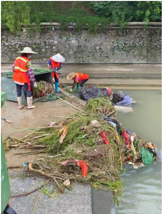 截至5月26日,共出动环卫工人90人次、运输车辆8车次,清理垃圾、杂物约13吨。目前,清理工作仍在进行中。