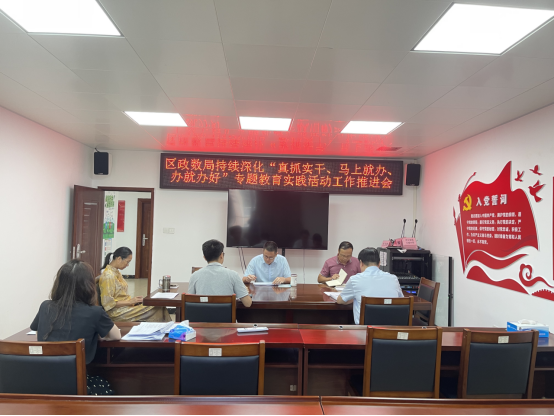 2023年8月30日上午,区政务服务数据管理局在局五楼会议室召开持续深化“真抓实干、马上就办、办就办好”专题教育实践活动工作推进会,局在家领导班子和股室负责人参加。