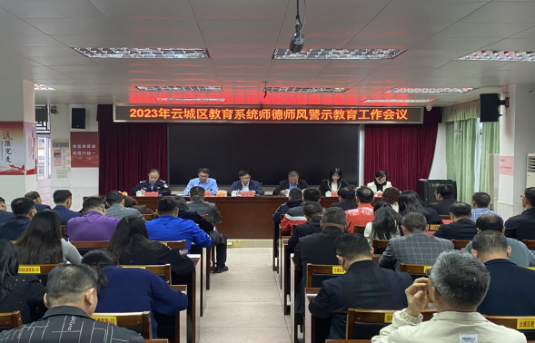 为全面贯彻习近平总书记关于教育的重要论述和党的二十大精神,不断加强师德师风建设,规范教师从教行为,涵养高尚师德修养,推动全区基础教育高质量发展,近日,云城区在区教育局七楼会议室召开师德师风警示教育工作会议。区委常委、组织部部长胡绍锋同志,云城区副区长、市公安局云城分局局长王维瑜同志出席会议并讲话,区教育局党组书记、局长邵彬强同志主持会议。区府办、区教育局、市公安局云城分局相关负责同志及全区中小学(幼儿园)校长(园长)共60余人参会。
