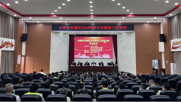 2月20日上午,云城区2024年乡村建筑工匠培训班开班仪式在云浮技师学院举行,云浮市人社局、云浮市住建局、云城区人民政府、云浮技师学院、云城区住建局有关负责同志出席开班仪式,云浮市建筑协会、云浮市建设咨询行业协会、云浮市土木建筑学会有关负责人、各建筑企业代表以及来自云城区各镇街的100余名乡村建筑工匠参加了此次开班仪式。