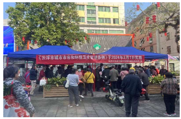 2024年3月5日上午,云城区城市管理和综合执法局组织党员干部共20多人在东西街东安广场开展《云浮市城市市容和环境卫生管理条例》(以下简称《条例》)普法宣传活动。