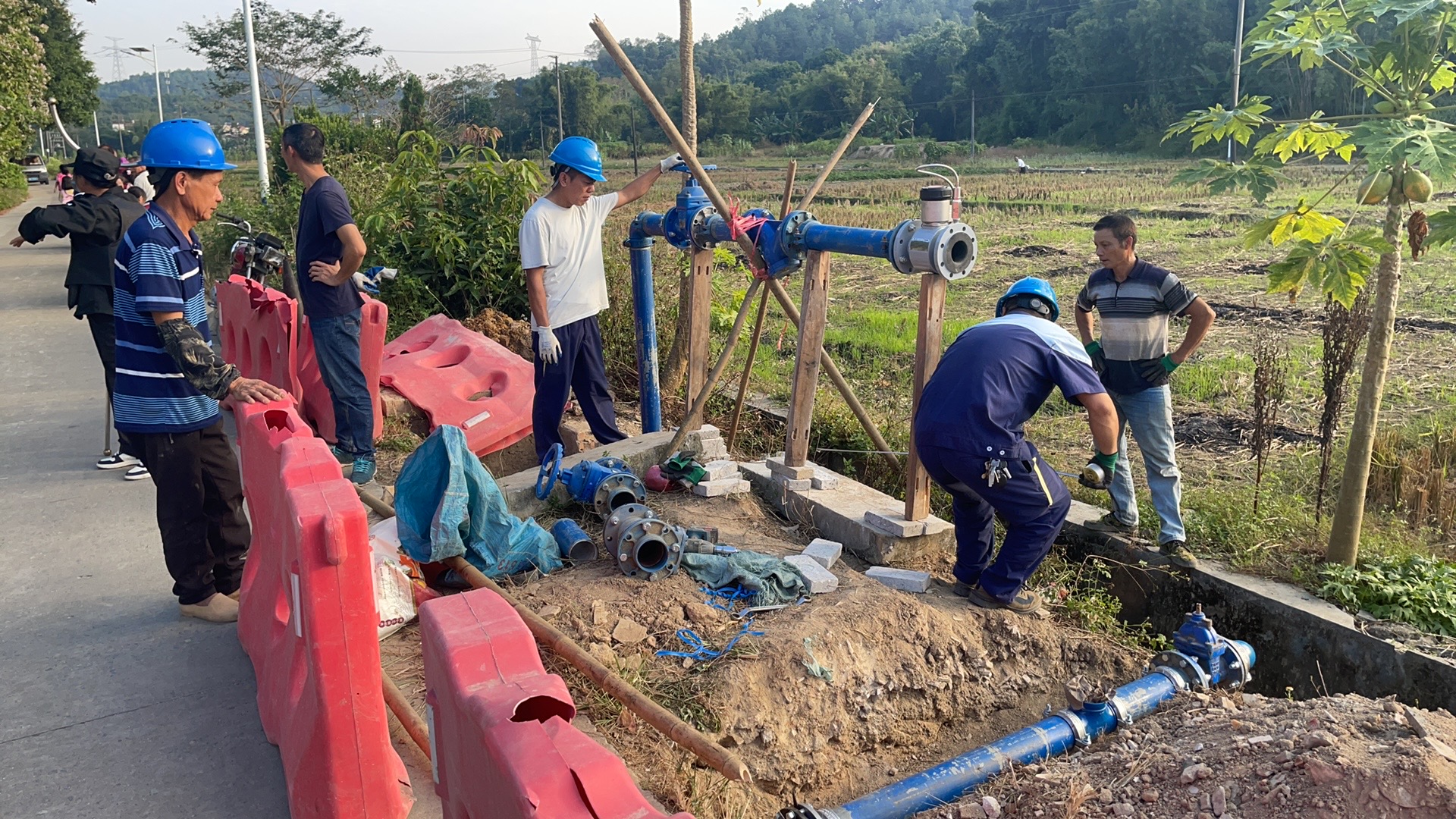 饮水安全事关百姓身体健康,是办好民生实事的重要举措。安塘街都涝村历年来依靠井水和山坑水作饮用水,在用水安全上存在较大安全隐患,而且常年供水不稳定,特别是每逢节假日期间更是无水可用。近年来,安塘街都涝村“两委”干部主动作为,了解群众“急难愁盼”问题,积极开展集中供水管道铺设工作。自2023年底集中供水工作铺开以来,安塘街都涝村委多次召开村民代表大会,统筹协调,全力推进,通过邀请云浮市粤海水务公司相关人员到现场勘察和设计方案,村干部上门入户讲政策、加大宣传引导等方式,广泛动员村民支持安装自来水管道工作。