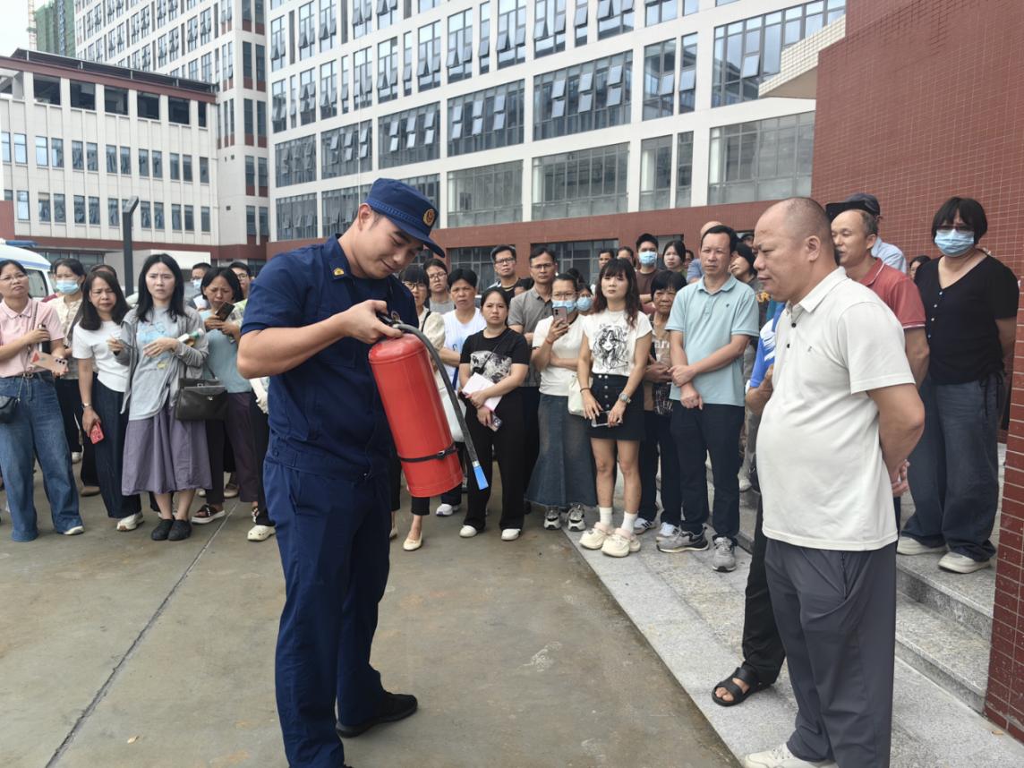 培训最后,在消防救援大队队员的专业指导下,参训学员开展实操训练,掌握灭火器“提、拔、握、压”四步法,精准对准火源根部喷射干粉压制火势;同时学习消防栓操作,迅速展开水带、连接水枪,完成整套灭火动作。