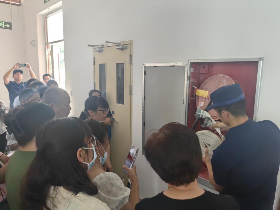 消防员现场教学干粉灭火器、消防水带、消防栓等消防设备使用